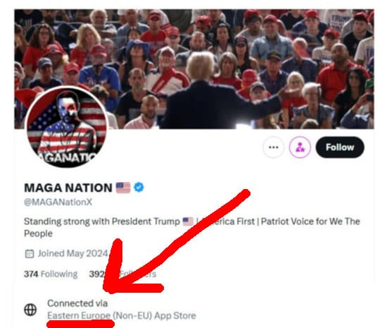 Last month the social media platform formerly known as Twitter decided to roll out a new feature: a location tool that reveals the country or region in which a given account is based. The result? A lot of foreign psyops warriors got caught with their pants down. @MagaNationX?