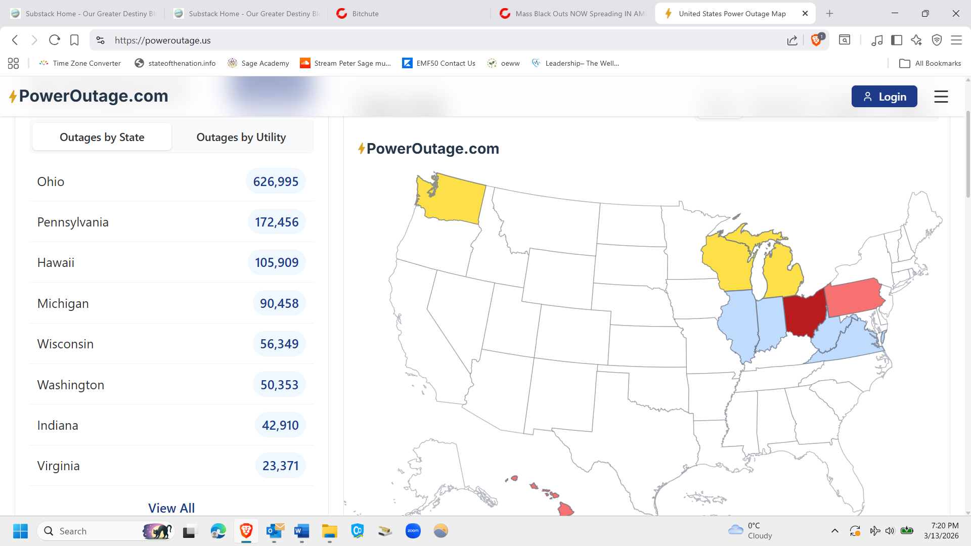 Power outages USA 03.13.26 and space weather