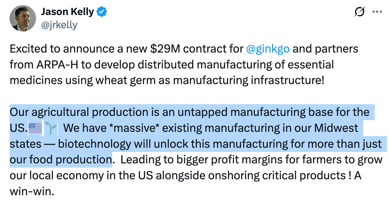 “The mission of Gingko is to make biology easier to engineer. And if you kind of squint at it, you can think of a cell as a computer, you know? You put in code, and you get out product. It is the future of manufacturing, where you can program a cell, provide it with feedstock like sugar water, and get a product out of it.”