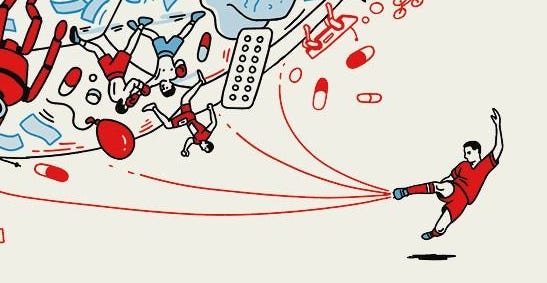 The figures of the footballer and the runner at the bottom of the cover illustrate how issues of power, identity, and ideology have infiltrated even the world of sports. Meanwhile, the voter casting a “protest vote” symbolizes the rise of populism and the growing distrust in political systems.
