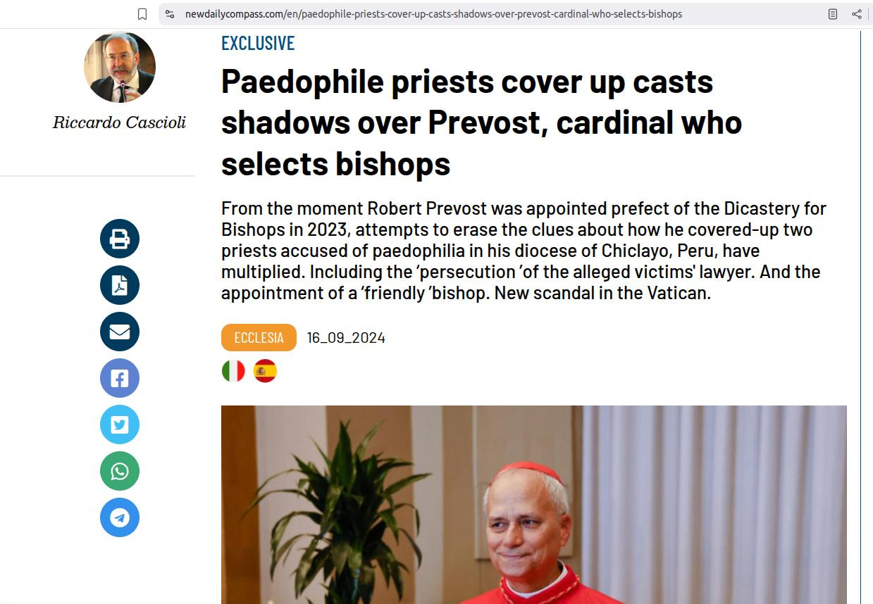 In any remotely sane world, exposes like the one published in September last year by the Daily Compass would have seen Prevost immediately disqualified from the papal contest.