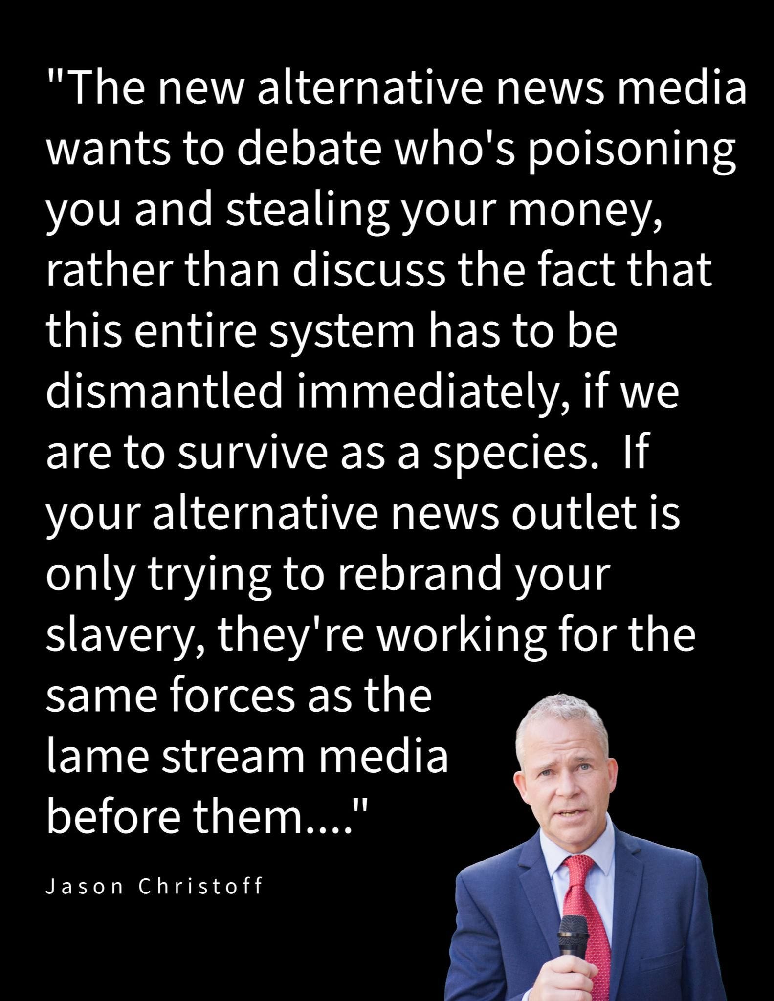 How many new sources of information keep the public in a never-ending disempowerment cycle by always pushing government solutions and government reform....when no solution can ever be found inside the sphere of government? https://www.jchristoff.com/blog/the-alternative-mainstream-media-same-as-the-old-lamestream-media