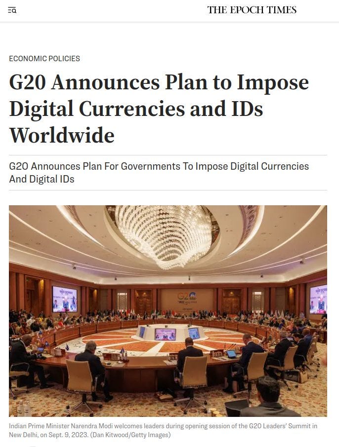 As per a September 9, 2023 article by The Epoch Times, the G20 officially announced a plan for governments to impose both Digital IDs as well as Digital Currencies (largely known as CBDCs).
