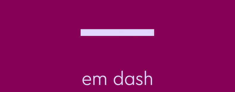 An em dash is a punctuation mark that can be used to replace commas, parentheses, colons, and semicolons. In general, the em dash is seen as being more interruptive or striking than other punctuation, so it is often used stylistically to draw a reader’s attention to a particular bit of information. The em dash resembles a horizontal line (—) longer than both a hyphen (-) and an en dash (–).