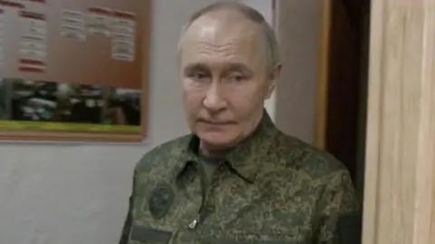 Vladimir Putin pictured last month reportedly visiting the Russian border region of Kursk in military fatigues